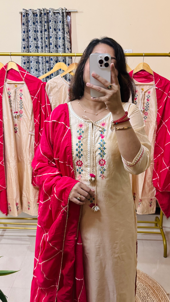 Timeless elegance in every thread ✨ Our Chanderi silk suit set is a masterpiece of traditional craftsmanship! 💁♀️👗 The intricate weave and luxurious silk fabric create a stunning look that’s perfect for special occasions.