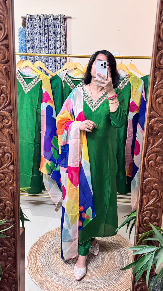 Digital printed duppatta handwork on neck with cotton inner lining in kurta