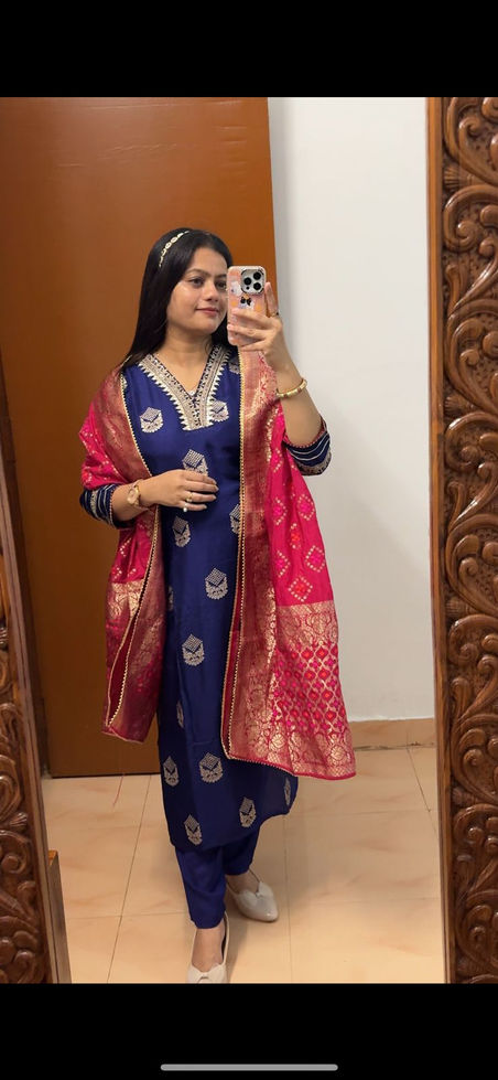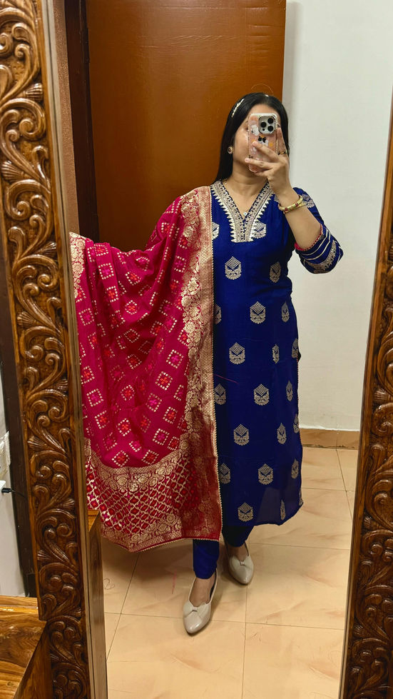 Silk kurta pants with contrast banarsi dupatta 🩷
